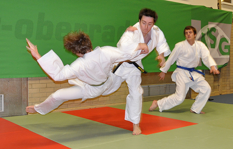 Jiu Jitsu ist eine japanische Kamfsportart, die von den Samurai zur waffenlosen Selbstverteidigung entwickelt wurde. Sie beinhaltet Teile des Aikido, Judo und Karate und versucht die Kraft des Angreifers durch sanfte und ausweichende Bewegung umzuleiten. Es dient unter anderem der Stärkung des Charakters und des Selbstbewusstseins.